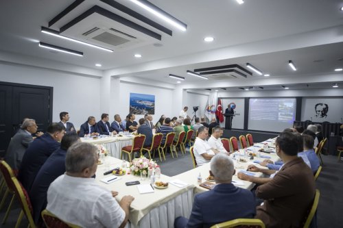İzmir Büyükşehir Belediye Başkanı Dr. Cemil Tugay, Aliağa'da sanayiciler ile nakliyecilerin yaşadığı ulaşım ve altyapı sorunlarını ele almak, sorunlara kalıcı çözümler üretmek için düzenlenen toplantıya katıldı.