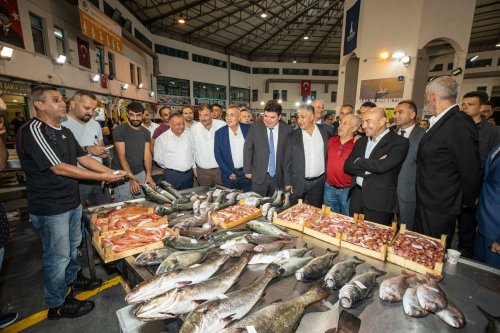 İzmir Büyükşehir Belediye Başkanı Tunç Soyer av yasağının sona ermesi nedeniyle İzmir Büyükşehir Belediyesi Su Ürünleri Hali’nde düzenlenen geleneksel buluşmaya katıldı.