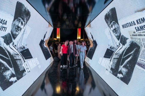 Soyer, fuar turu kapsamında gençlerle birlikte 100. Yılda Cumhuriyet Tüneli'ni geçti. Fuar ziyaretçilerinin büyük ilgi gösterdiği Yapay Zeka ile Atatürk bölümüne giren Başkan Tunç Soyer, yapay zeka yardımıyla Atatürk ile fotoğraf çektirdi.