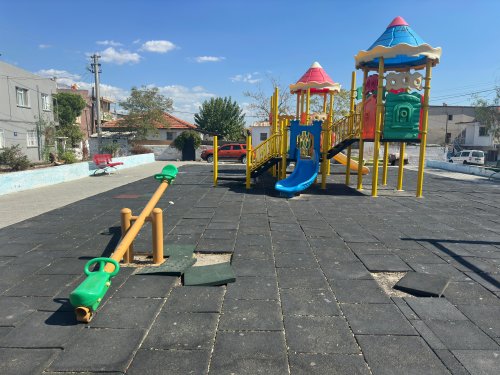 Oyun alanı içerisinde bulunan zeminin kırıldığı ve onarım çalışması yapılmadığı parkta, ayrıca temizlik ve denetim çalışmalarının yetersiz olması da dikkat çekti.