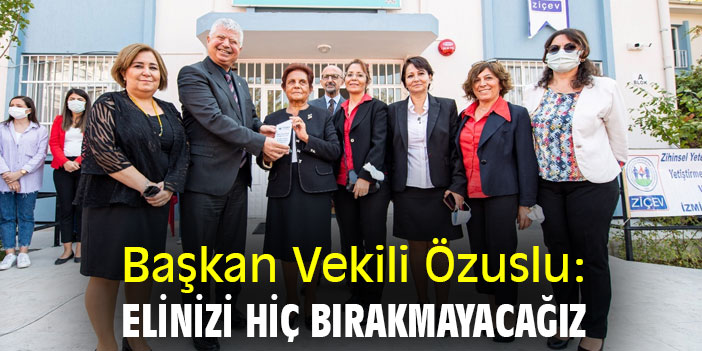 İzmir Büyükşehir Belediyesi Başkan Vekili Mustafa Özuslu, Özel Vasfiye Orhan Akyıldız Özel Eğitim ve Rehabilitasyon Merkezi töreninde öğrenci aileleri ve eğitimcilere seslenerek “Belediye olarak desteklerimizi üzerinizden hiçbir zaman çekmeyeceğiz” dedi.