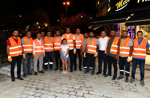 İncelemelerin ardından eldiven ve yeleğini giyen Başkan Yıldız, gece mesaisini sürdüren personelle birlikte taş döşeme ve istifleme çalışmalarında bulundu. Yıldız, çalışmalar sırasında meydandan geçen vatandaşlarla sohbet etmeyi ve önerilerini dinlemeyi de ihmal etmedi.