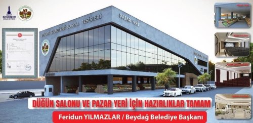Cumhuriyet Mahallesi’nde Pazaryeri ve Düğün Salonu olarak kullanılan binanın, statik ömrünü tamamlaması nedeniyle başlatılan çalışmalar sonucunda; içerisinde Otopark, Pazaryeri, Sosyal Tesisler ve Düğün Salonu’nun bulunduğu proje için bir aşama daha gerçekleştirildi. Pazaryeri ve Düğün Salonu Projesi ile ilgili zemin etüt çalışmaları başladı. Beydağ Belediye Başkanı Feridun Yılmazlar, pazaryerini esnaflar ve Beydağlılar için en iyi faydalanacakları şekilde planladıklarını ifade etti.