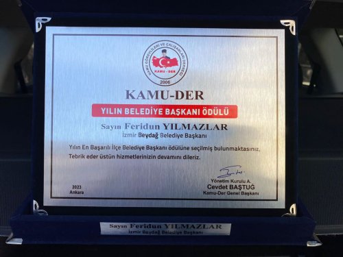 Kamu Görevlileri ve Çalışanları Derneği’nin (Kamu-Der) düzenlediği ve 2023’ün enlerinin seçildiği Kamu-Der Geleneksel Ödül Töreni’nde, Beydağ Belediye Başkanı Feridun Yılmazlar, ‘Yılın En Başarılı İlçe Belediye Başkanı' ödülüne layık görüldü.