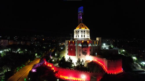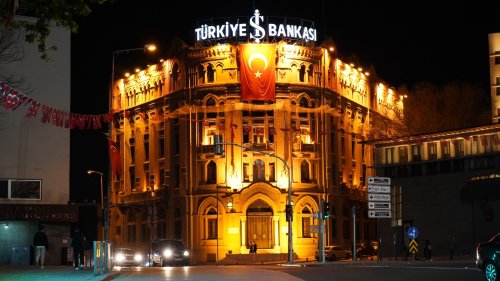 Öte yandan I. ve II. TBMM Binası ışıklandırılırken restorasyonu tamamlanan EGO Genel Müdürlüğünün yeni binasında ise dev Türk bayrağı sarkıtıldı.