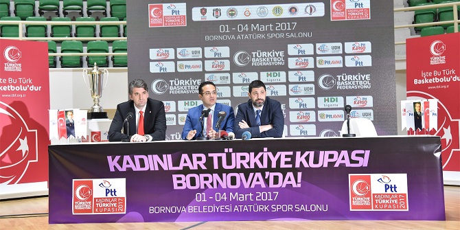Türkiye Basketbol Federasyonu, Bornova Belediyesi’nin ev sahipliğinde yarın başlayacak Kadınlar Türkiye Kupası Finalleri öncesi, maçları oynanacağı Atatürk Spor Kompleksi’nde bir basın toplantısı düzenledi. Bornova Belediye Başkanı Olgun Atila, Türkiye Basketbol Federasyonu Ceosu Ömer Onan ve Federasyonu’nun Milli Takım ve Liglerden Sorumlu Yönetim Kurulu Üyesi Hüseyin Beşok, organizasyonla ilgili görüşlerini dile getirdi.