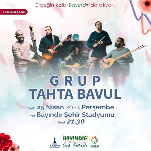 Festival kapsamında 25 Nisan Perşembe akşamı Grup Tahta Bavul, 26 Nisan Cuma akşamı Türk müziğinin sevilen grubu Sakiler, 27 Nisan Cumartesi günü ise Türk pop müziğinin güçlü ismi İrem Derici Şehir Stadyumu’nda sahne alacak. Stadı dolduracaklara unutulmaz bir akşam yaşatacak konserler ve diğer tüm etkinlikler Bayındır Belediyesi tarafından ücretsiz yapılacak.