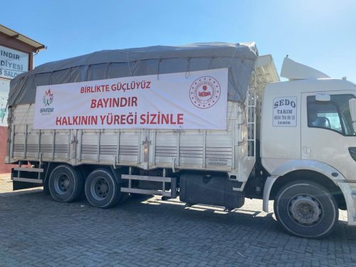 Deprem gününden itibaren Bayındır Kaymakamlığı ve Bayındır Belediyesi başta olma üzere kamu kurumları ve Bayındırlılardan toplanan yardımlar tırlarla deprem bölgesine gönderiliyor.