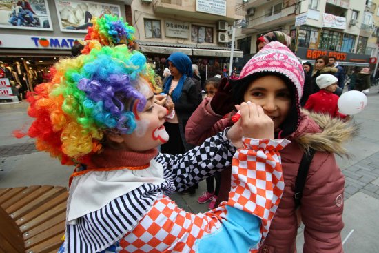 İlçenin en işlek caddelerinde heykel atölyesi, palyaço ve Noel babadan oluşan animatör ekibini karşısında gören çocuklar yeni yıl coşkusuyla mutlu bir gün geçirirken, gün boyu süren etkinlik renkli görüntülere sahne oldu.