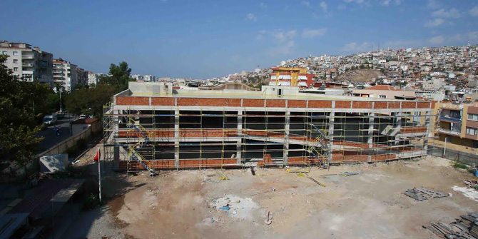 Bayraklı Belediyesi tarafından Çay Mahallesi'ne yapılan dev pazar yeri tamamlanmak üzere.