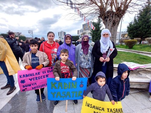 Dünya Emekçi Kadınlar Günü’nde Bayraklı’nın güçlü kadınları tek yürek oldu. Kültür ve Sosyal İşler Müdürlüğü tarafından Yamanlar Mahallesi Nazım Hikmet Parkı’nda düzenlenen etkinlikte kadın cinayetlerine vurgu yapıldı. Son 3 ayda katledilen kadınlar anısına 72 kadının isminin yazılı olduğu panoya kadın ayakkabıları çakılarak farkındalık yaratıldı. Gitarist Haydar Yağmur, müzik dinletisi sundu. Kadınlar, “Dayanışma yaşatır, Boşanmayı Değil Cinayeti Engelle, Yaşasın Kadın Dayanışması” yazılı yaşam, kadın ve özgürlük temalı pankartlar açtı. Olumsuz hava koşullarına rağmen çok sayıda kadının katıldığı etkinlikte hep bir ağızdan özgürlük ve barış sloganları atıldı.
