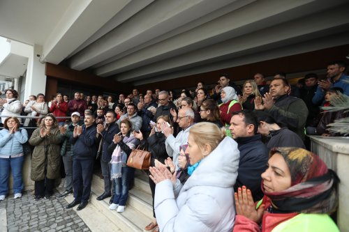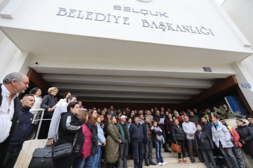 Belediye emekçilerinin yoğun katılım gösterdiği açıklamada, “Parkları inşa eden, yolları yapan, sokakları temizleyen ve tüm Efes Selçuk kentinin kamusal hizmetlerini sürdüren belediye emekçileri olarak ilan ederiz ki; eğer başka hesaplarla belediye başkanımıza yönelecek bir tehdit niyetinde olanlar varsa karşılarında bizleri bulacaklardır. Ya hep beraber ya hiçbirimiz!” denildi.