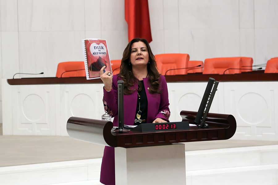 Kitabı Aile ve Sosyal Politikalar Bakanlığı’nın bütçe görüşmelerinde gündeme getiren CHP Kocaeli Milletvekili Fatma Kaplan Hürriyet, kitabı nikâhlarda dağıtan Kütahya Belediyesi hakkında soruşturma talep etti.