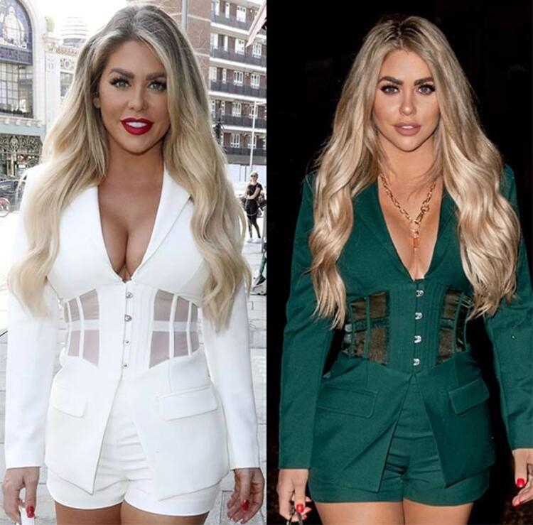 Essex kentinde bir restorana girerken görüntülenen 34 yaşındaki ünlü yıldız, yeşil bir tulum giydi ve görüntüsünü de pırıltılı ayakkabı ve çantayla tamamladı.