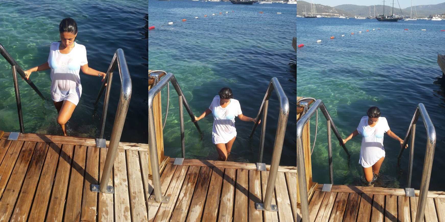 Denize tişörtüyle girerken görüntülendi