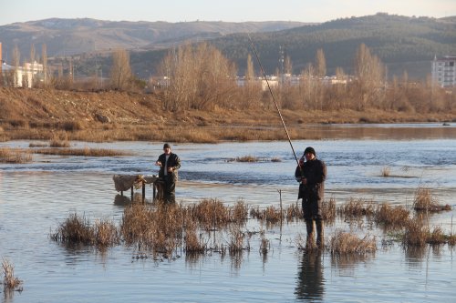Türkiye’nin en uzun nehri Kızılırmak’ta yılın bu mevsimi buzlar kırılarak balık avlanırken, şimdi balıkçılar dizlerine kadar suya girip neredeyse elleriyle balıkları topladı.