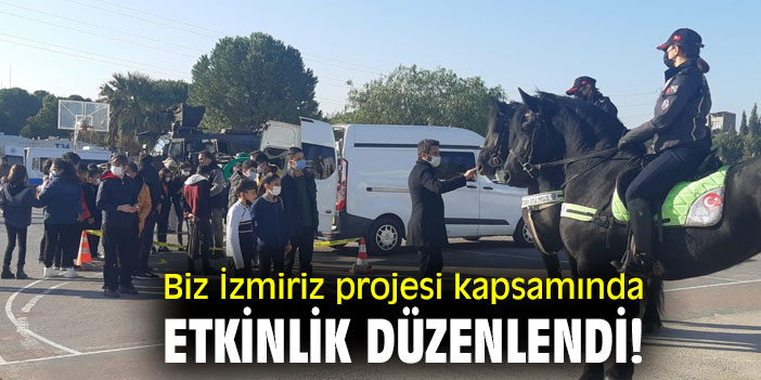 Biz İzmiriz-3 projesiyle, İzmir'deki çeşitli okullardan seçilen çocuklara polislik mesleğinin tanıtılması ve polis sevgisi oluşturulması amacıyla polislerin katılımıyla etkinlik düzenlendi.