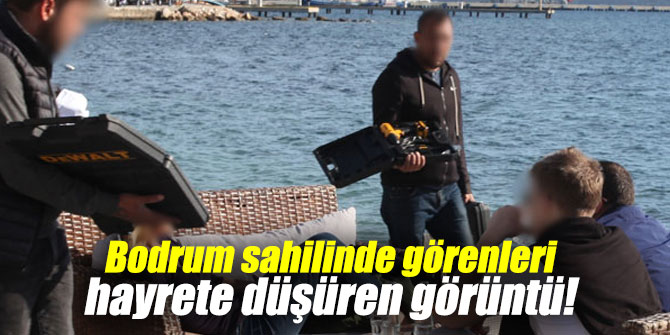 Bodrum’da sahil kenarında güneşlenen turistlere matkap satmaya çalışan seyyar satıcılar görenleri şaşırttı.