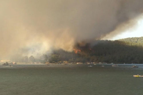 Otellere yakın noktada çıkan yangın rüzgarın da etkisiyle kısa sürede büyüdü. Ekipler canla başla yangını kontrol altına almaya çalışırken, yangın otellere yaklaştı. Olası bir tehlikeye karşı müşteriler otellerden teknelerle denizden tahliye ediliyor.