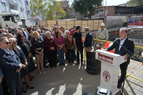 Büyük Çarşı’daki 112 kişilik yurt binasının temel atma törenine Bornova Belediyesi eski başkanı Sırrı Aydoğan, CHP Bornova İlçe Başkanı Ertürk Çapın, İyi Parti Bornova İlçe Başkanı Mustafa Tabak, belediye meclis üyeleri, belediye bürokratları, esnaf ve vatandaşlar katıldı.
