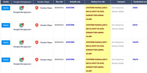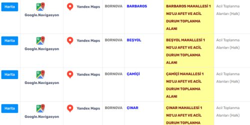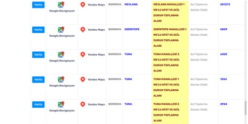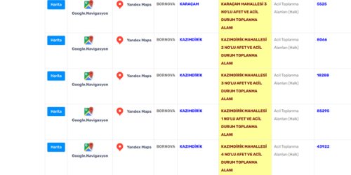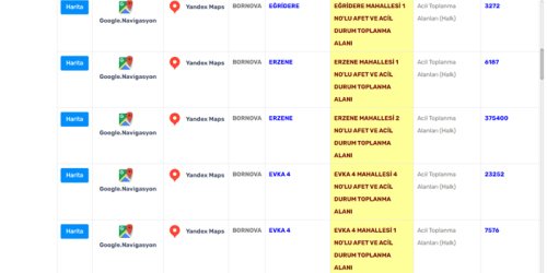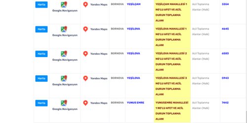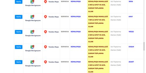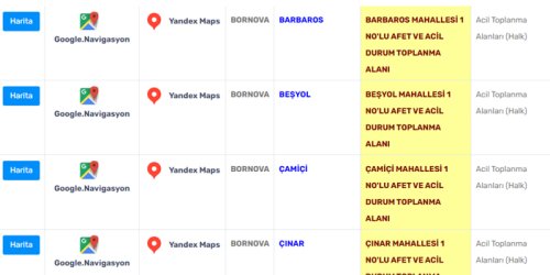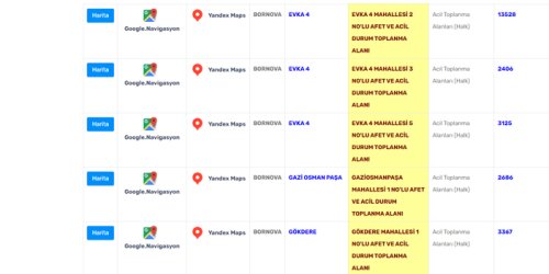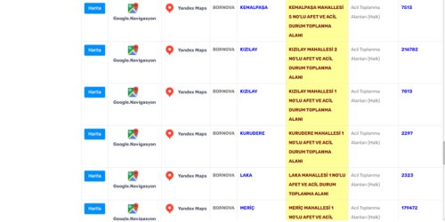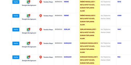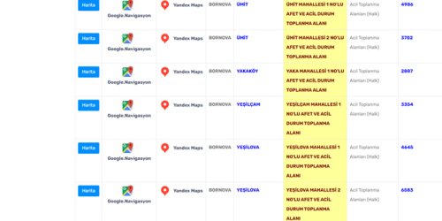 Bornova Belediyesi'nin açıkladığı afet toplanma alanları şöyle: