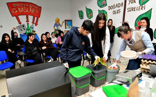 Bornova Belediyesi İklim Değişikliği ve Sıfır Atık Müdürü Fatma Mesutgil, biyobozunur atıkların iklim değişikliğine etkisini anlatarak organik atıkların kompost üretimiyle geri dönüştürülebileceğini vurguladı. Atölyeye katılan öğrenciler, S.S. İzyaşam Kooperatif Başkanı Nevin Bağdatlı ve Zeytince - Ekolojik Yaşamı Destekleme Derneği temsilcilerinin desteğiyle Bokashi Kovaları kullanarak kompost üretim sürecini uygulamalı olarak deneyimledi.