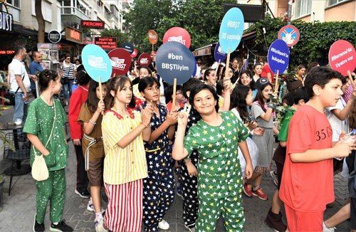 Düzenlenen etkinliklerde Ana kadro oyuncusundan kursiyerlerine, çocuk, genç yaşlı tüm BBŞT ailesi, rengarenk kostümleriyle yer aldı. Büyükpark’tan başlayan kortej yürüyüşü bando eşliğinde şarkılar ve marşlarla yapıldı. Palyaçolar ve jonglörgösterileri festivalleri aratmayan kutlamalara ayrı bir renk kattı. Küçükpark ve Süvari Caddesi boyunca devam eden kortej geçişi yine Büyükpark’ta son buldu. Yaşanan coşkuya Bornovalılar da ortak oldu. Kimileri alkışlarla tempo tuttu, kimileri korteje katıldı.