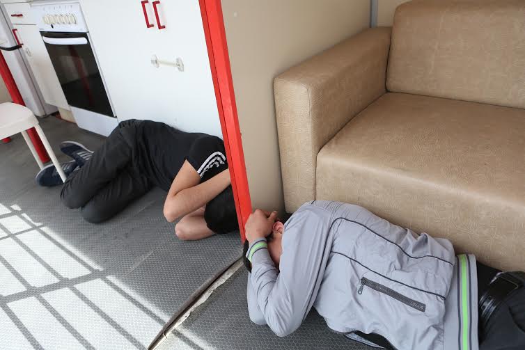 Son olarak Süleyman Demirel Çok Amaçlı Lisesi’nde verilen eğitimlerde, bir tarafı açık olarak tasarlanan tırın içine gruplar halinde alınan çocuklara değişik büyüklüklerde ki deprem sarsıntıları yaşatılarak yapılması gereken ve hayati önem taşıyan kendini koruma teknikleri gösterildi. Eğitimlere Karşıyaka Belediyesi Sivil Savunma Uzmanı Ömer Karaca da katılarak deprem sonrası arama kurtarma konularında bilgi verdi.