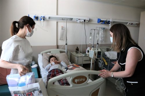 Bornova Belediyesi, başta hematoloji ve onkoloji bölümleri olmak üzere zorlu tedavi süreçlerinden geçen çocuklara moral vermek için ziyaret düzenledi. Bornova Belediyesi Sosyal Yardım İşleri Müdürlüğü personeli çocuklara nevresim takımı, şampuan, ıslak mendil, dezenfektan ve maske gibi ürünleri hediye etti.