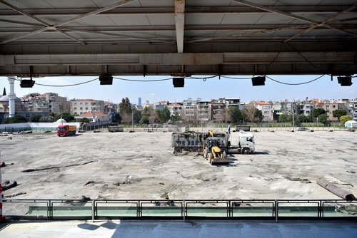 Yusuf Tırpancı Sahası’nın ardından ilçenin simgelerinden olan Bornova Şehir Stadı’nı da tamamen yenilemek üzere çalışmalara başlayan Bornova Belediyesi'nin yenileme projesi kapsamında kullanılmayan batı tribünü yıkıldı, eskiyen zemin söküldü.
