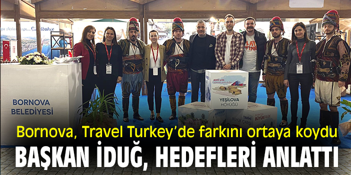 Bornova Belediye Başkanı Dr. Mustafa İduğ, Bornova’yı turizmde de bir cazibe merkezi haline getirmeyi hedeflediklerini belirterek, “İzmir’in bilinen tarihini 8.500 yıl öncesine dayandıran Yeşilova Höyüğü, Homeros Mağaraları, Belkahve ve Levanten Köşkleri’nin yanı sıra pek çok müzenin bulunduğu ilklerin kenti Bornova’mızın bu güzelliklerini tanıtmak için Travel Turkey’deki yerimizi aldık” diye konuştu.