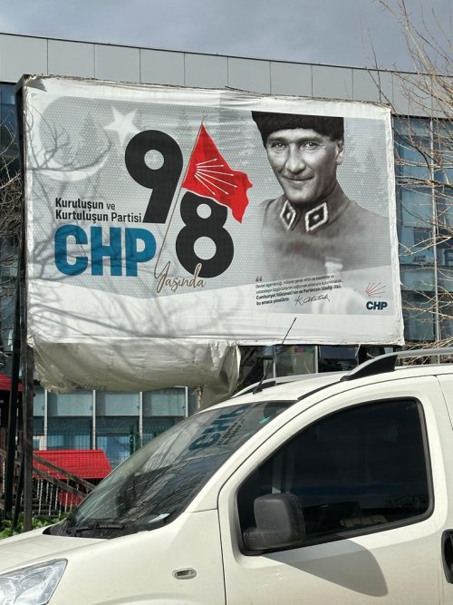 Bornova’da bir garip billboard: CHP 98 yaşında mı?