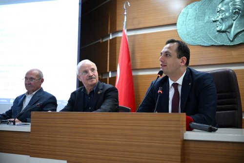 Bornova Belediyesi Meclis Salonu’nda düzenlenen toplantıya Kıyı Ege Belediyeler Birliği Genel Sekreteri Hurşit Akdemir ve Sayıştay Eski 4. Daire Başkanı Abdurrahman Acar konuşmacı olarak katıldı.