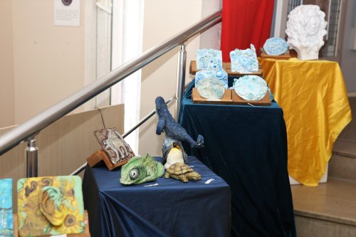 Resim ve heykellerin yanısıra kostümlerin de yer aldığı sergide öğrenciler, insan-hayvan ilişkisiyle hayvan sevgisini işlediler. Okullarında desen, iki ve üç boyutlu sanat atölyesi, minyatür ve grafik tasarım dersleri alan öğrencilerin ortaya koydukları eserler ve bir araya gelme nedenleri takdirle karşılandı. Sergide 9 heykel, bir büst, iki köstüm, yağlı boya resimler, eskiz çalışmaları, pastel ve sulu boya eserler yer aldı.