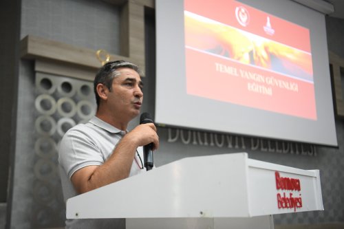 Eğitimde İtfaiye Eğitmeni Cihan Varoğlu da yangın sırasında yapılması gerekenleri anlatırken, yangın söndürme cihazları ve yanıcı maddeler hakkında hayati bilgiler verdi. Varoğlu, yangınlara neden olan olayların başında bilgisizlik ve ihmalin geldiğini belirterek, sakin kalmanın önemine dikkat çekti.