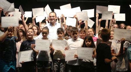 Üç aylık eğitimlerini tamamlayan küçüklere katılım belgelerini Bornova Belediye Başkanı Olgun Atila verdi.