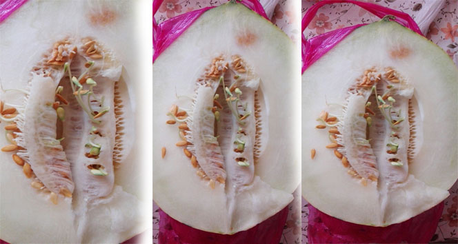 Çarşıdan aldığı kavunun içindeki çekirdeklerin filizlendiğini gören vatandaş şoke oldu. Uzmanlar aşırı sıcaklardan olgunlaşan kavunlarda bu durumun gözlendiğini bildirdi.