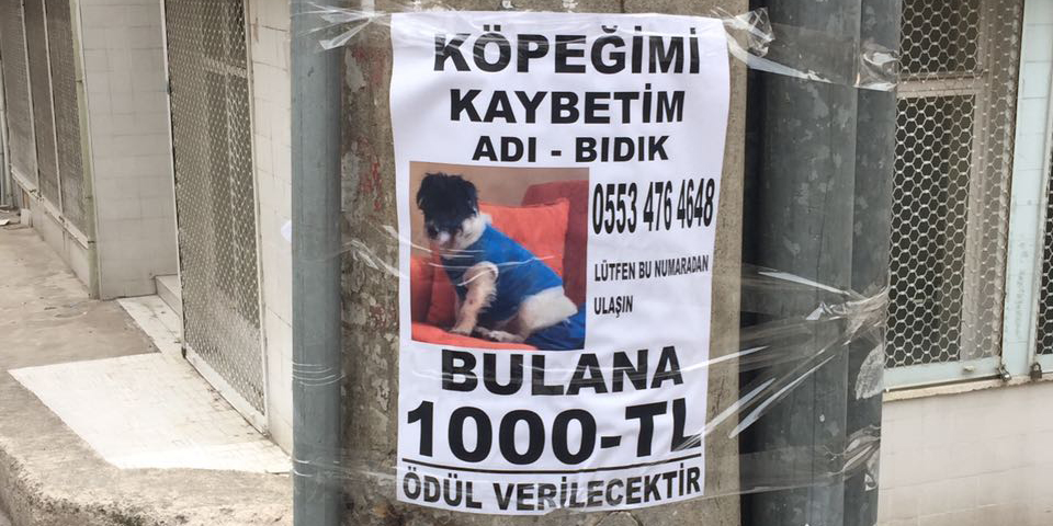 İzmir'de kaybolan köpeğini bulana 1000 TL ödül verecek.