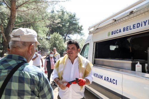 Buca Belediyesi'ne ait ikram araçları, etkinlik boyunca hem katılımcılara hem de çevredeki vatandaşlara soğuk su, çay, meyve suyu ikramında bulundu.