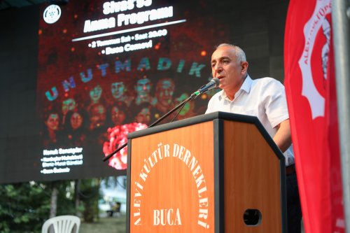 Alevi Kültür Dernekleri Buca Şubesi Cemevi Başkanı Hüseyin Gökçe ise bir ülkenin sanatçıları, yazarları, şairleri, aydınları ile var olduğunu ifade ederek, “Ancak ne yazık ki 2 Temmuz’da biz bu canlarımızı yitirdik. Dönemin yöneticileri seyirci kaldı. Düşünün ki Koray Kaya sadece 12 yaşında. 12 yaşındaki bir çocuk nasıl bir suç işlemiş olur? Madımak’ı anlamak için Alevi olmaya gerek yok, Sünni olmaya gerek yok. İnsan olmak yeterli... Başkasının acısını hissediyorsan insansın. Biz her 2 Temmuz’da bu acıyı yeniden yaşıyoruz” diye konuştu. Daha sonra, sanatçılar Kardeşler Muhabbeti Grubu ve Ozan Özdemir, türkülerini hayatlarını yitiren canların anısına söyledi.