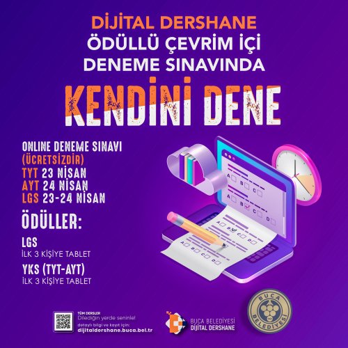Buca Belediyesi Dijital Dershane’de Yükseköğretim Kurumları Sınavı (YKS) ve Liselere Geçiş Sistemi (LGS) öğrencilerine ödüllü deneme sınavı gerçekleştirecek.