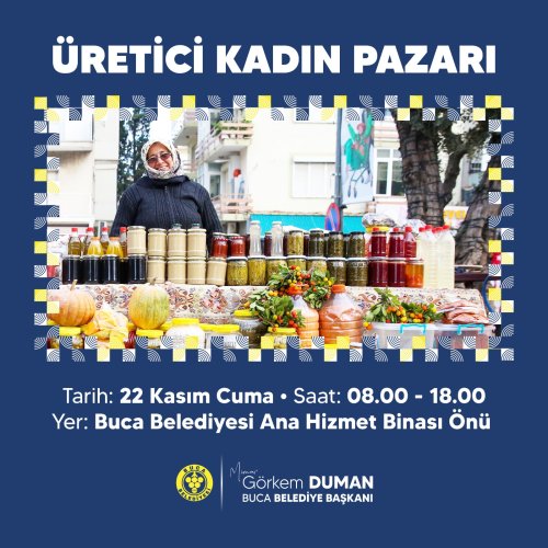 MEDYA EGE - Buca Belediyesi'nin, kadın emeğine verdiği önem doğrultusunda ve kadınların sosyal yaşam ile ev ekonomisine katkı sunması amaçlarıyla hayata geçirdiği Üretici Kadın Pazarı, 22 Kasım Cuma günü saat 08.00 - 18.00 saatleri arasında Buca Belediyesi Ana Hizmet Binası önünde kurulacak.