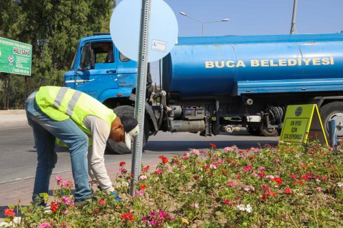 Toplam 15 bin mevsimlik çiçeğin dikimini yapan ekipler, sıcak havaya rağmen ana arterlerden refüjlere kadar olan bütün alanlarda Buca’yı rengarenk çiçeklerle süslemeye devam edecek.