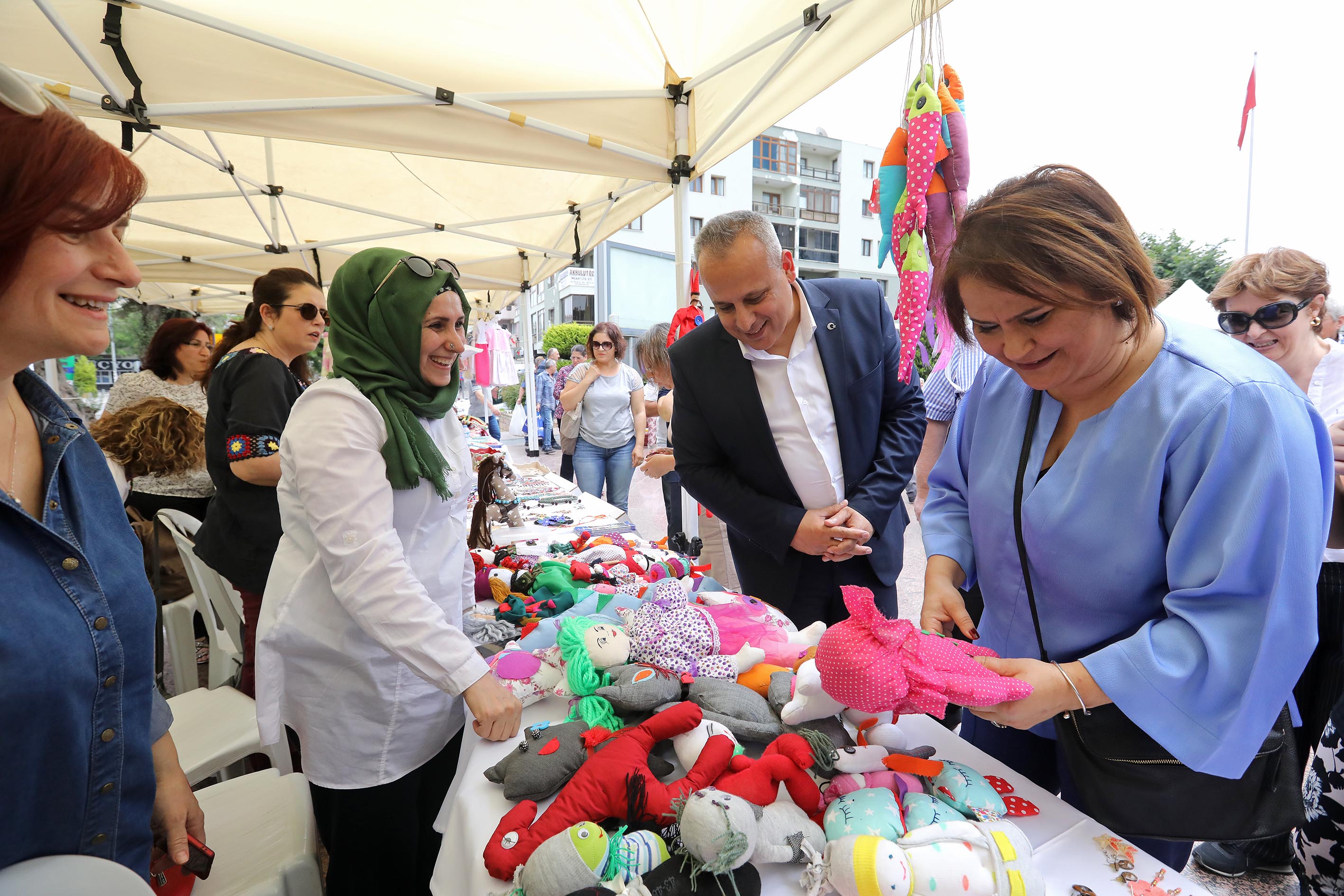 Özenle hazırlanmış el emeği göz nuru ürünlerin sergilendiği stantları tek gez gezen Buca Belediye Başkan Yardımcısı Murat Işık ve Buca Kent Konseyi Başkanı Mürüvet Balcılar Bucalı kadınların maharetli ellerinden çıkan birbirinden güzel eserleri beğeniyle inceledi.