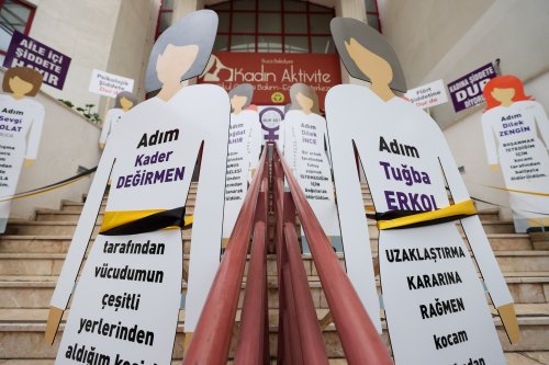 Kadın Aktivite Merkezi önünde hazırlanan cinayete kurban giden 15 kadının isimleri ve hikâyelerinin yer aldığı kadın maketleri sergisi ise büyük dikkat çekti.