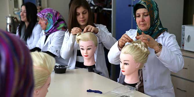 Bucalı kadınlar güzelleşirken meslek öğreniyor.