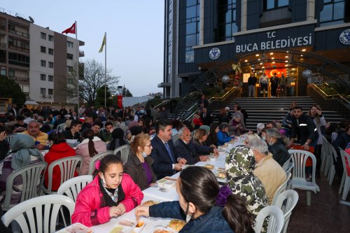 Buca Belediyesi’nin hizmet binasının önünde düzenlenen iftar yemeğine Buca Belediye Başkanı Erhan Kılıç, CHP Buca İlçe Başkanı Hacer Taş Gültepe, İYİ Parti Buca İlçe Başkanı Gamze Bilgen Torun, belediye başkan yardımcıları, meclis üyeleri ve muhtarlar da eşlik etti.