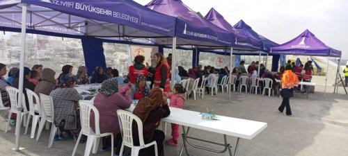 Çadır kentin yanı sıra köyleri de ziyaret ederek kadınlarla buluşan Büyükşehir ekipleri, depremzedelerin yaralarını dayanışmayla sarmaya çalıştı.