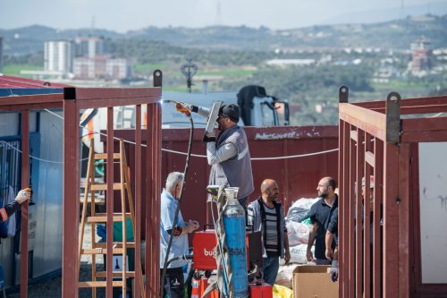 Hatay’da yol formeni olarak görev yapan, Fen İşleri Dairesi Başkanlığı bünyesindeki Metin Aydın “8 iş makinesi 10 kamyon ve 64 çalışma arkadaşımla beraber bir yandan enkaz kaldırma çalışmalarına destek veriyoruz, bir yandan içinde bulunduğumuz 23 dönümlük alan içerisinde 200 ailenin barınabileceği konteyner kentin yapım çalışmalarını devam ettiriyoruz. Altyapı çalışmalarına en kısa zamanda başlayacağız. Konteynerlerin üretimini de kendi ekiplerimizle yapıyoruz” dedi.