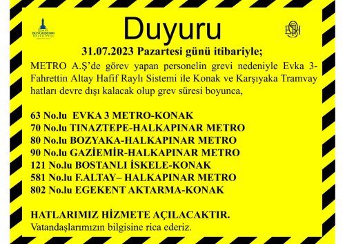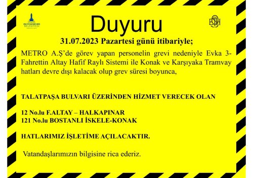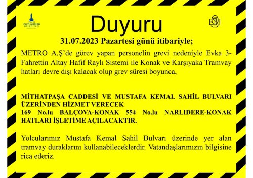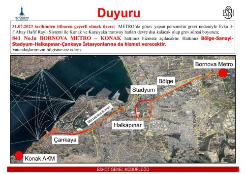 İzmir'de metro ve tramvayda Toplu İş Sözleşmesi (TİS) görüşmelerinde uzlaşı çıkmaması üzerine işçiler, greve gidilmesi üzerine, Büyükşehir Belediyesi, yeni ulaşım hatlarını açıkladı.